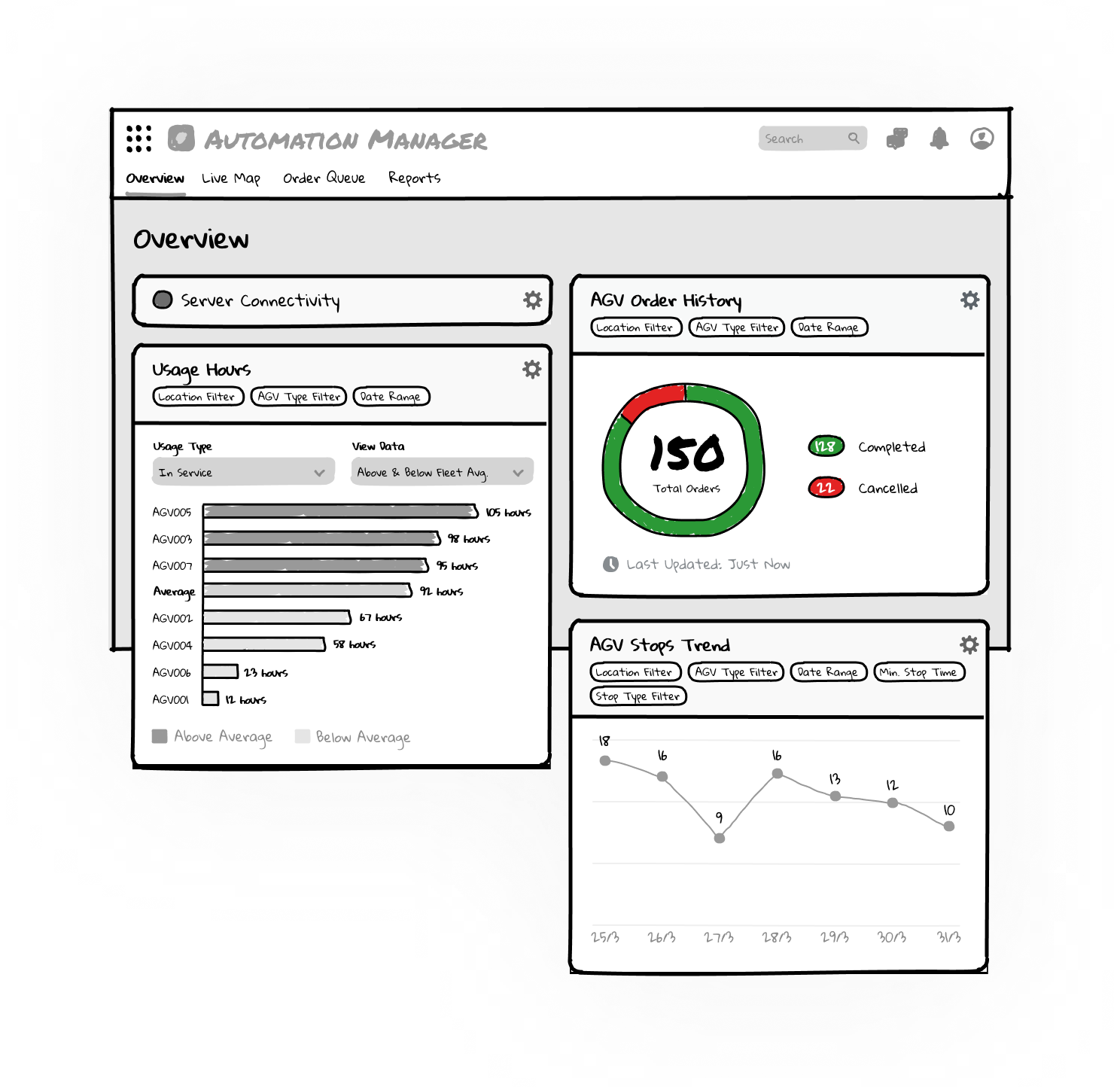 Dashboard – a collection of widgets that capture actionable AGV performance metrics, and digestible at a glance