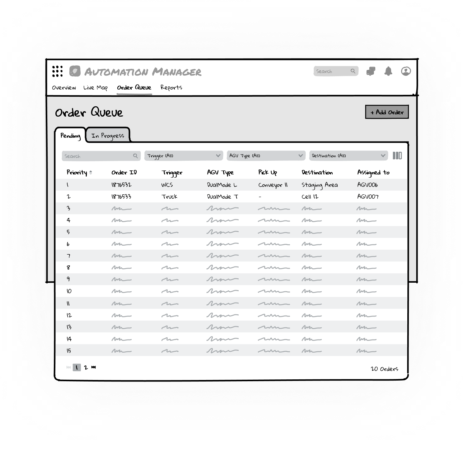 Order Queue - list of orders that are waiting in the queue (Pending) and orders currently underway (In Progress)