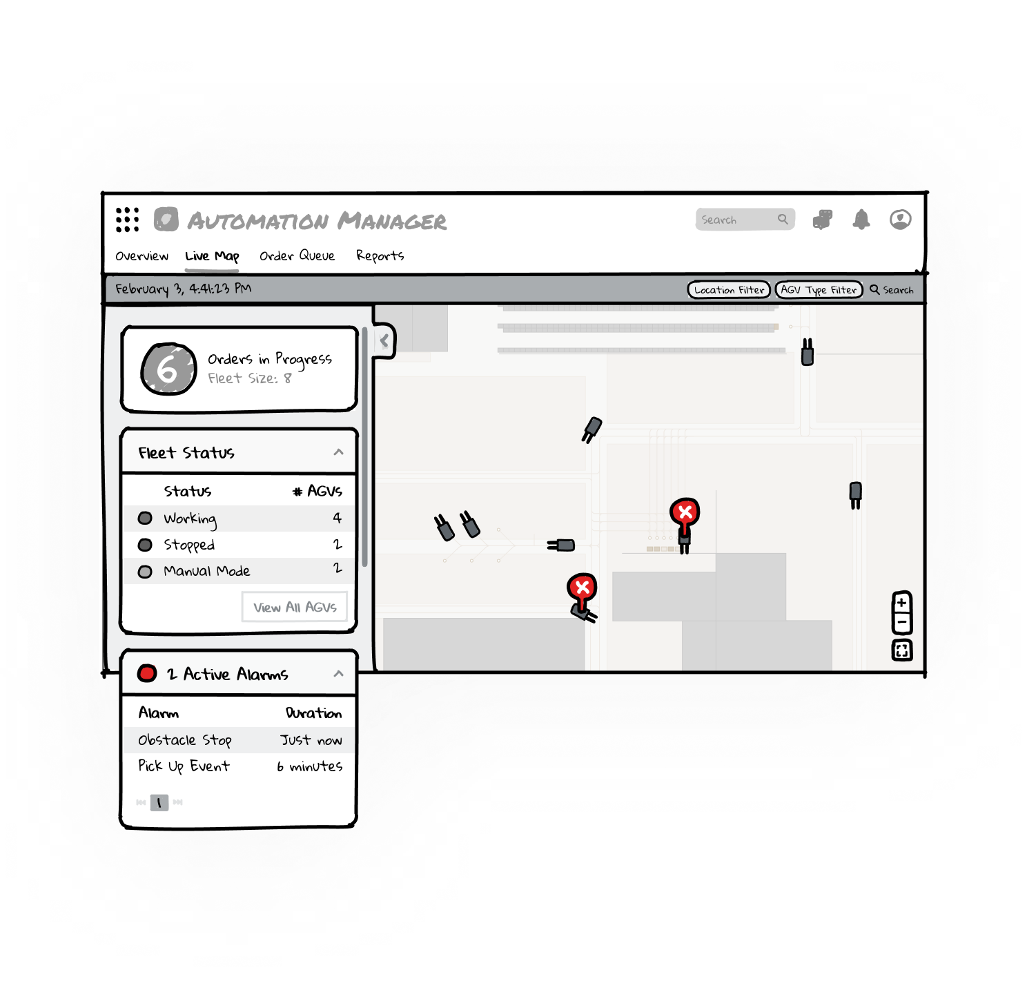 Live Map – real time view of fleet movement, activity, and most importantly AGVs in need of attention